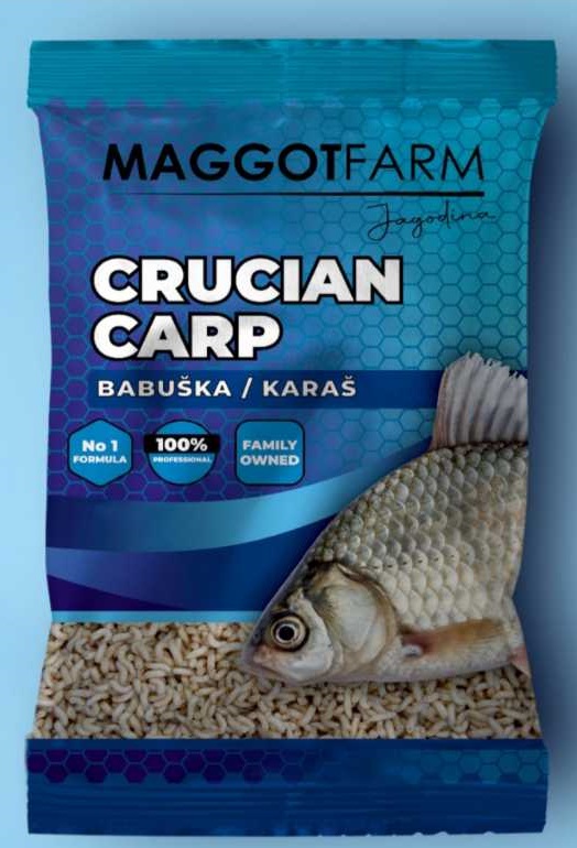 Maggot Farm Protein Crucian 900g je kvalitetna primama za karaša, babušku, šarana, sa više od 10 vrsta žitarica i domaćim proteinima, aromatična i efikasna u svim uslovima ribolova.